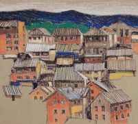 他又喜歡將景物分割成多個層面,以不同層面表達不同光暗。在每個層面填上一色,變成色塊。